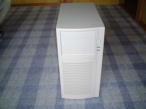 今回買ったのは、このケースです。昔、どこか(DEC?)のサーバーがこんなケースだったような....。前面にたくさん冷却用の穴が合いていて、なかなか良く冷えそうです。実際買ったお店でも、Xeon用に最適とか言っていましたし、ハードディスクはたくさん内蔵できますし、やっぱりハイエンド機