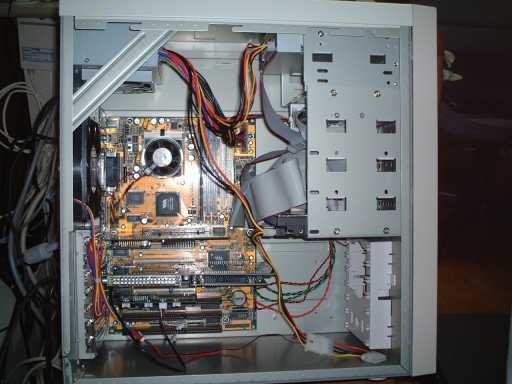 その他、ハードディスク、DVD-ROM、VGA card、Sound card 等を取り付けます。ハードディスクはBarracuda ATA(流体軸受けの80GB)を使おうと思って買ってきたのですが.......認識せず。手持ちのIBM製のをジャンパー設定で2GBに容量制限して、使うハメに(涙。
