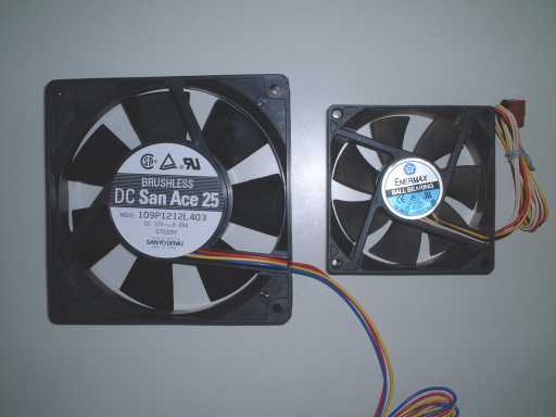 空冷ファンです。左が当ケース用の12角、右が一般的なケース用の8角タイプです。並べてみると、結構違います。12角、でっかいです。
