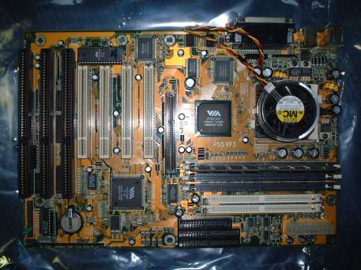VIAチップセットのAMD-K6 良くわからないMHzのマザーボードです。メモリは、SIMMとDIMMの混在が出来ます。