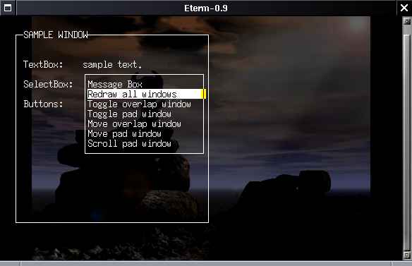 RC_WINDOW win( 2, 3, 30, 14, "SAMPLE" );